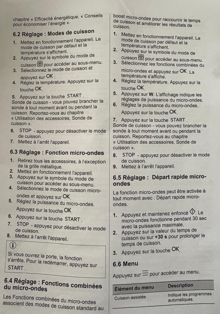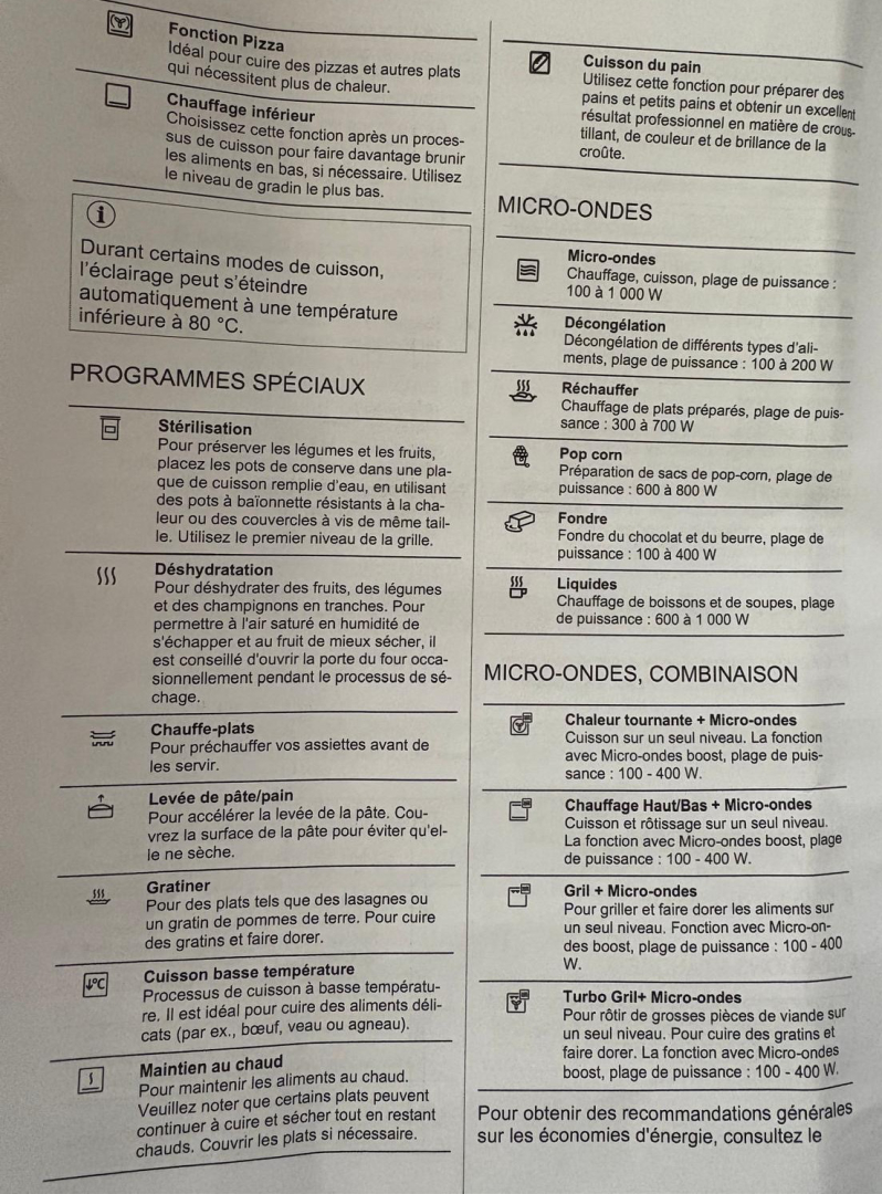 Mode d'emploi du four et du micro-ondes intégré