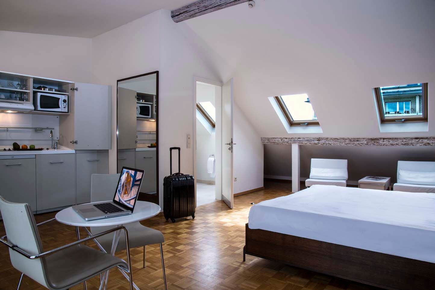 Choisissez parmi nos différents types d’appartements celui qui correspond à vos besoins, selon la durée de votre séjour et la proximité de votre lieu de travail. Chaque chambre suite, studio ou appartement, qu’il ait une ou deux chambres à coucher, est meublé avec élégance et présente un aménagement spacieux, optimisé, avec un équipement moderne et fonctionnel. Sont fournis également : les parures de lits, les serviettes de bain et des produits de toilette pour vous accueillir à votre arrivée.