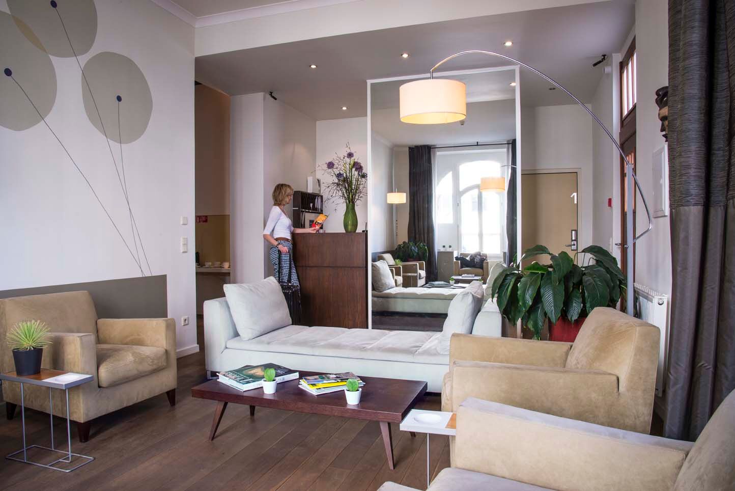, certains avec terrasses ou jardins privatifs. Une réception multilingue est à votre disposition pour vous accueillir et vous assister du lundi au vendredi de 08:30 à 17:00. Au dernier étage de la résidence, une terrasse aménagée, à la disposition des résidents vous offre une vue superbe sur les toits de la ville.