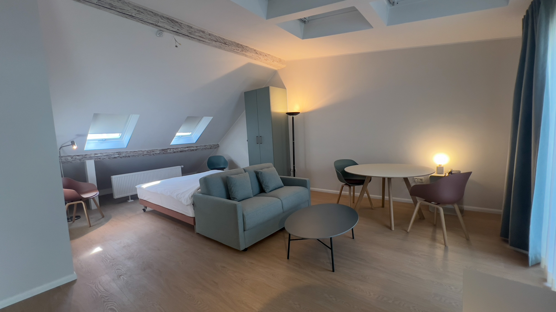 aménagés en open space avec des zones spécifiques pour le couchage, la détente et le travail. Une entrée et une salle de bains séparée avec WC, complète cet ensemble. Ils disposent d'un équipement similaire à celui des studios Elegant mais dans un espace de vie très vaste. Il est possible d'ajouter un lit simple de sorte à loger 2 adultes et un bébé. Les kitchenettes sont équipées de plaques vitrocéramiques, d'un micro-ondes, d’un congélateur intégré dans le frigidaire, de couverts et d’ustensiles de cuisine pour préparer et prendre vos repas mais aussi inviter des amis. En plus d’un espace de vie extrêmement généreux, les studios Penthouse proposent pour certains des terrasses.