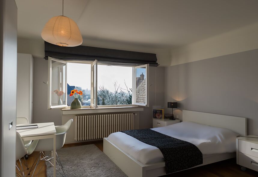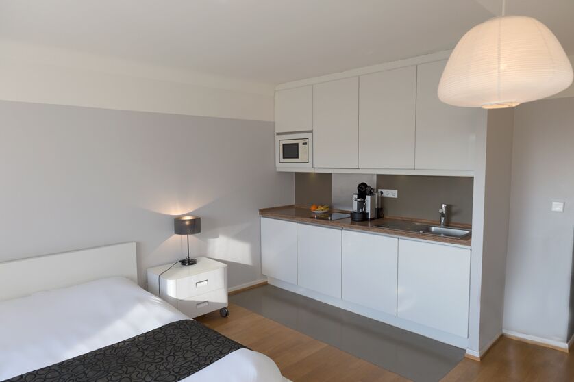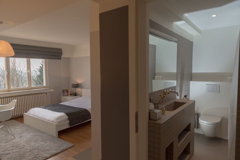 Une entrée et une salle de bains avec WC, complète cet ensemble. La kitchenette est équipée de plaques vitrocéramiques, d'un micro-ondes, d'un lave vaisselle, d’un congélateur intégré dans le frigidaire, de couverts, d’ustensiles de cuisine et d'une machine à café.Très clair, il dispose d’une vaste baie vitrée offrant une vue dégagée sur le quartier du Limpertsberg.