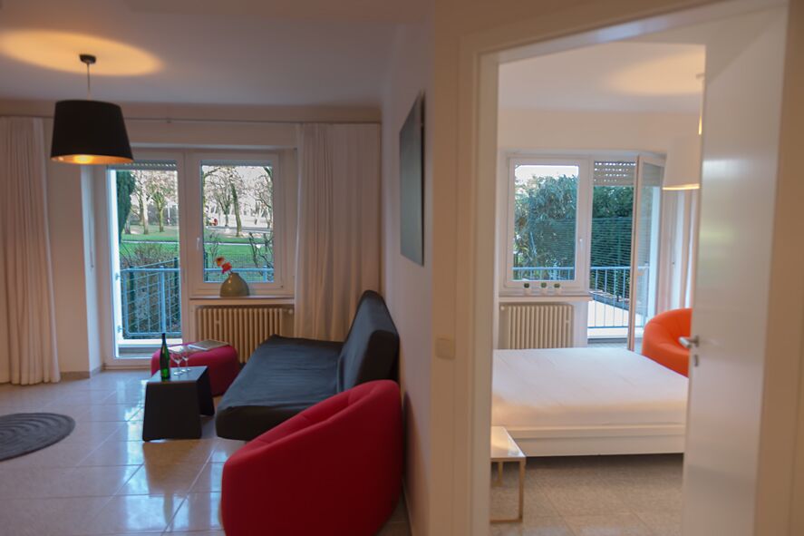 Cet appartement de 60 m2, propose 3 espaces distincts : une cuisine américaine avec comptoir entièrement aménagée (plaques chauffantes, micro-ondes, four, frigidaire avec congélateur intégré, lave vaisselle, machine à café, couverts et d'ustensiles de cuisine), un espace salon et une chambre à coucher. Il dispose d’une très belle terrasse avec vue sur le parc, accessible depuis le salon et la chambre à coucher. Un wc séparé situé à l’entrée de l’appartement et une salle de bain attenante à la chambre à coucher complète cet ensemble. Le salon étant équipé d’un canapé lit, cet appartement peut accueillir 4 adultes et 1 enfant.